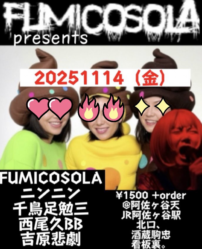 ▶FUMICOSOLA ▶ニンニン ▶千鳥足勉三 ▶西尾久BB ▶吉原悲劇 |