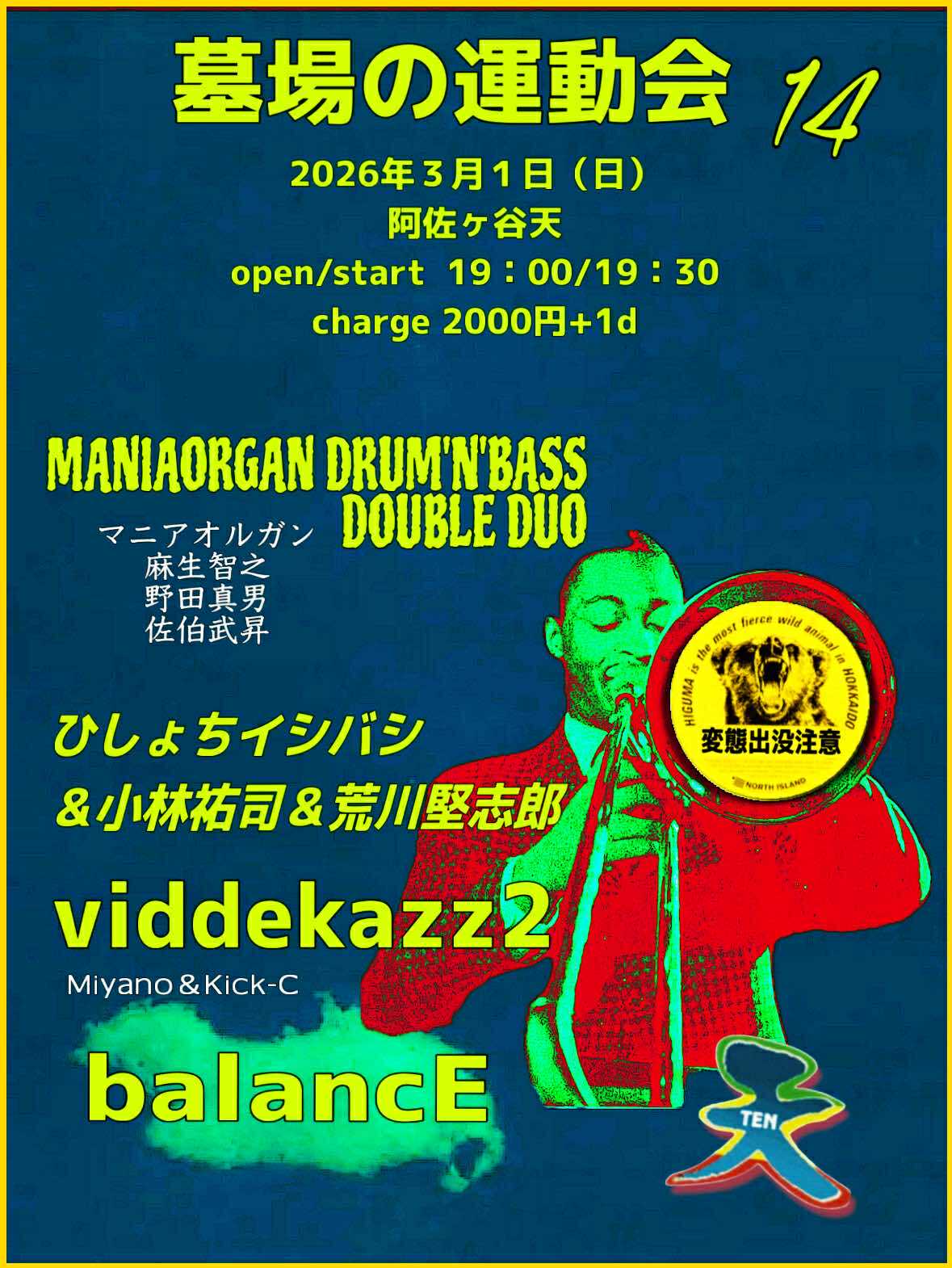 ▶balancE ▼ ひしょちイシバシ/小林祐司/荒川堅志郎 ▼MANIAORGAN DRUM'N'BASS DOUBLE DUO マニアオルガン/麻生智之 野田真男/佐伯武昇 ▼viddekazz2 Miyano/Kick-C |