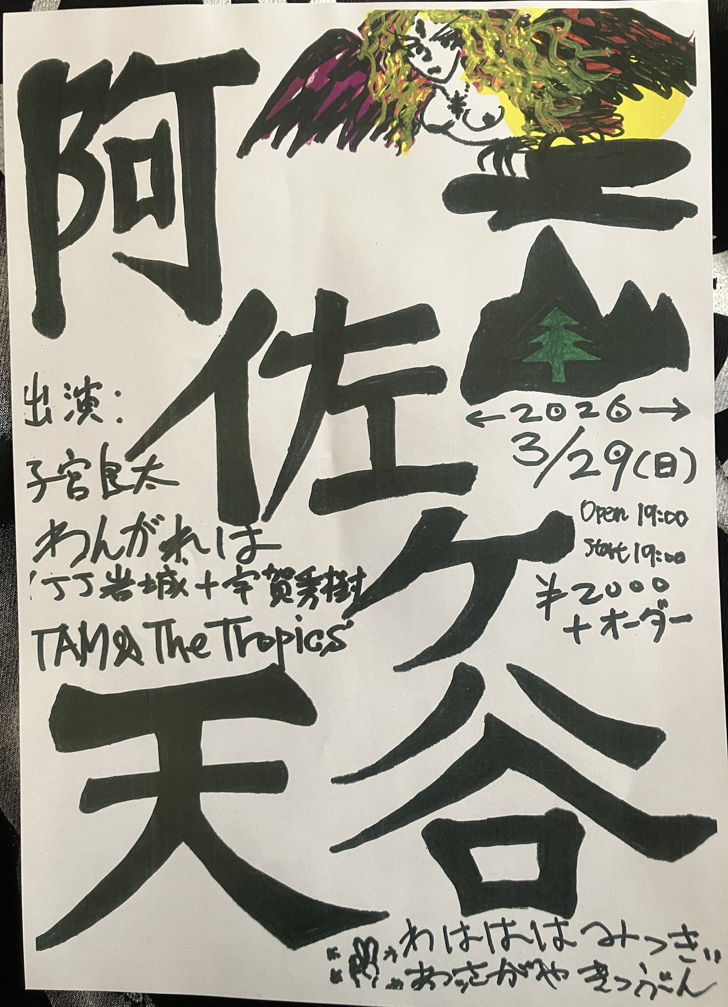 ▶若松公子 ▶桃源郷 ▶YOUNG MIND SOUL ☆LIVE後は¥300で焼肉パーティー! よろしくお願いします。( ͡° ͜ʖ ͡°)b |