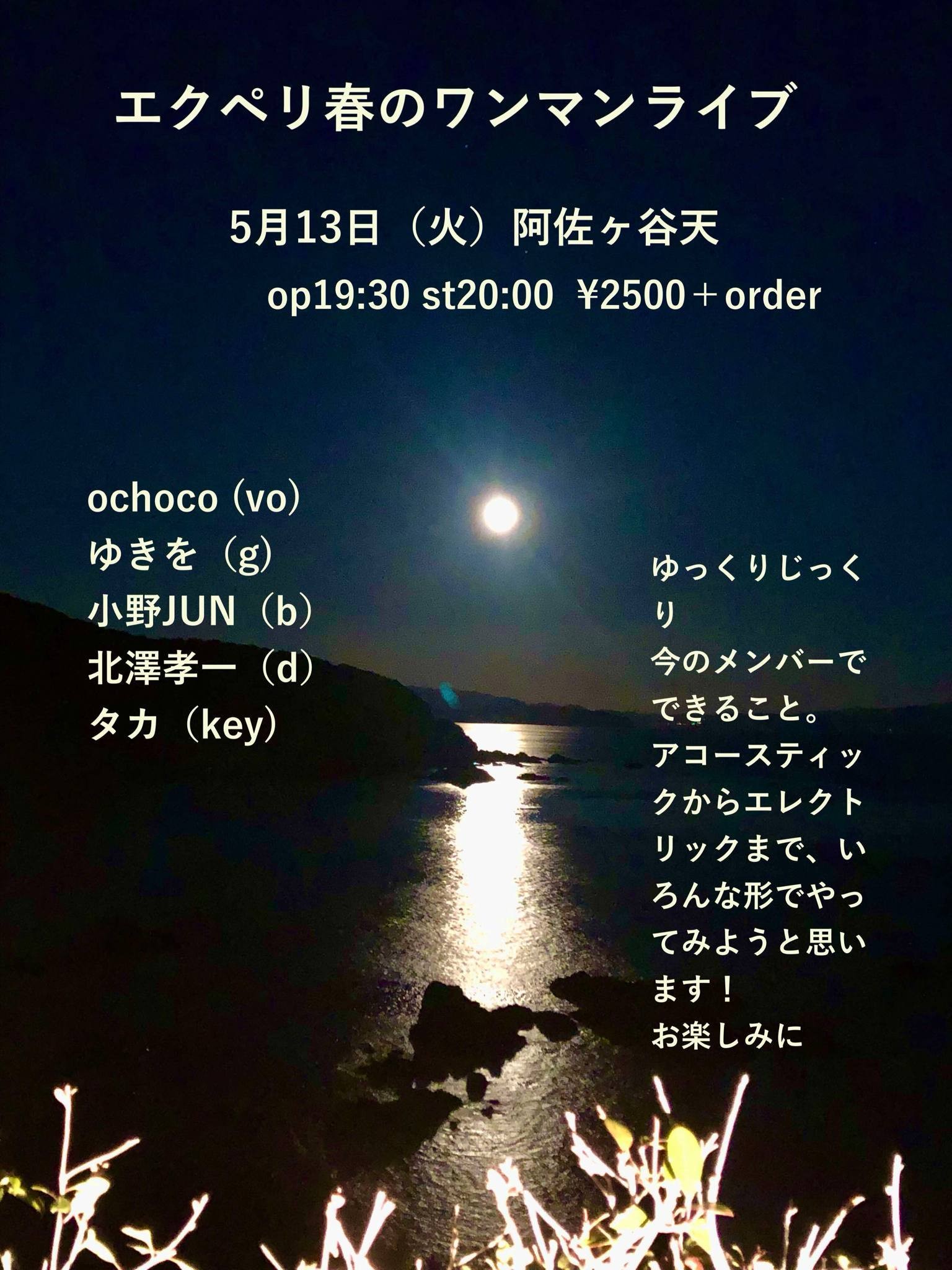 ▼エクペリ おちょこ(vo) ゆきを(g) 小野JUN(b) 北澤孝一(ds) タカ(key) ゆっくりじっくり、今のメンバーでできること。 アコースティックからエレクトリックまで、 いろんな形でやってみようと思います! お楽しみに♡ |