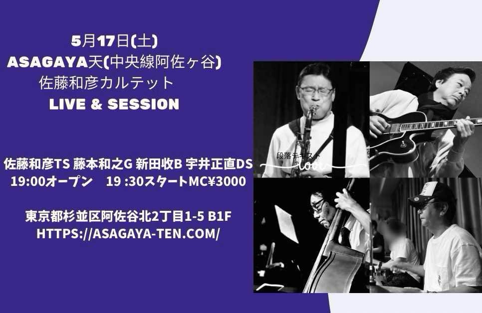 ▼佐藤和彦カルテット 佐藤和彦(ts) 藤本和之(g) 新田收(b) 宇井正直(ds) |