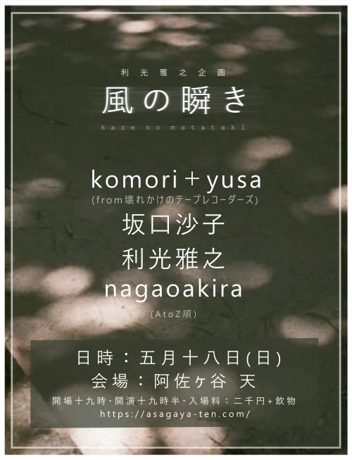 ▶komori+yusa(from 壊れかけのテープレコーダーズ) ▶坂口沙子 ▶利光雅之 ▶nagaoakira |