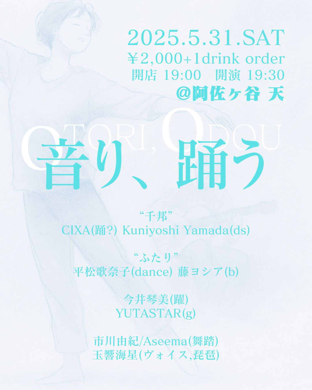 ▼千邦 “chihou” CIXA(踊?) Kuniyoshi Yamada(ds) ▼ふたり 平松歌奈子(dance) 藤ヨシア(b) ▼ 今井琴美(躍) YUTASTAR(g) ▼ 市川由紀/Aseema(舞踏) 玉響海星(ヴォイス,琵琶) |