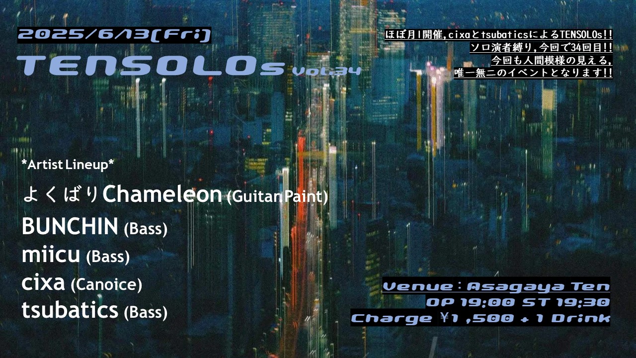 ▶CiXA(canoice) ▶︎BINCHIN(b) ▶︎tsubatics(b) ▶miicu(b) ▶︎よくばりChameleon.(g,paint) |