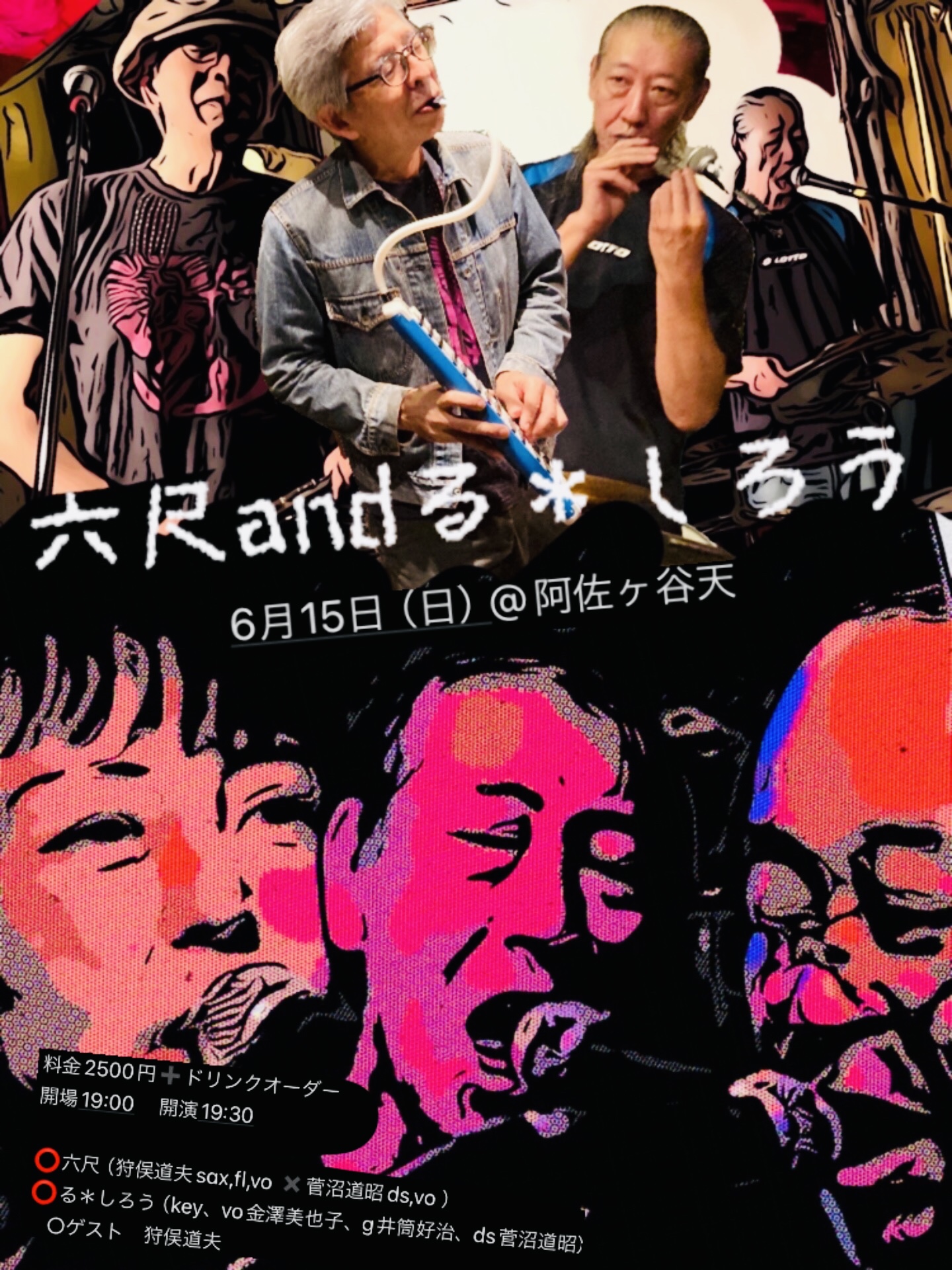 ▼六尺 狩俣道夫(sax,fl,vo) 菅沼道昭(ds,vo) ▼る*しろう 金澤美也子(key,vo) 井筒好治(g) 菅沼道昭(ds) ○ゲスト 狩俣道夫 |