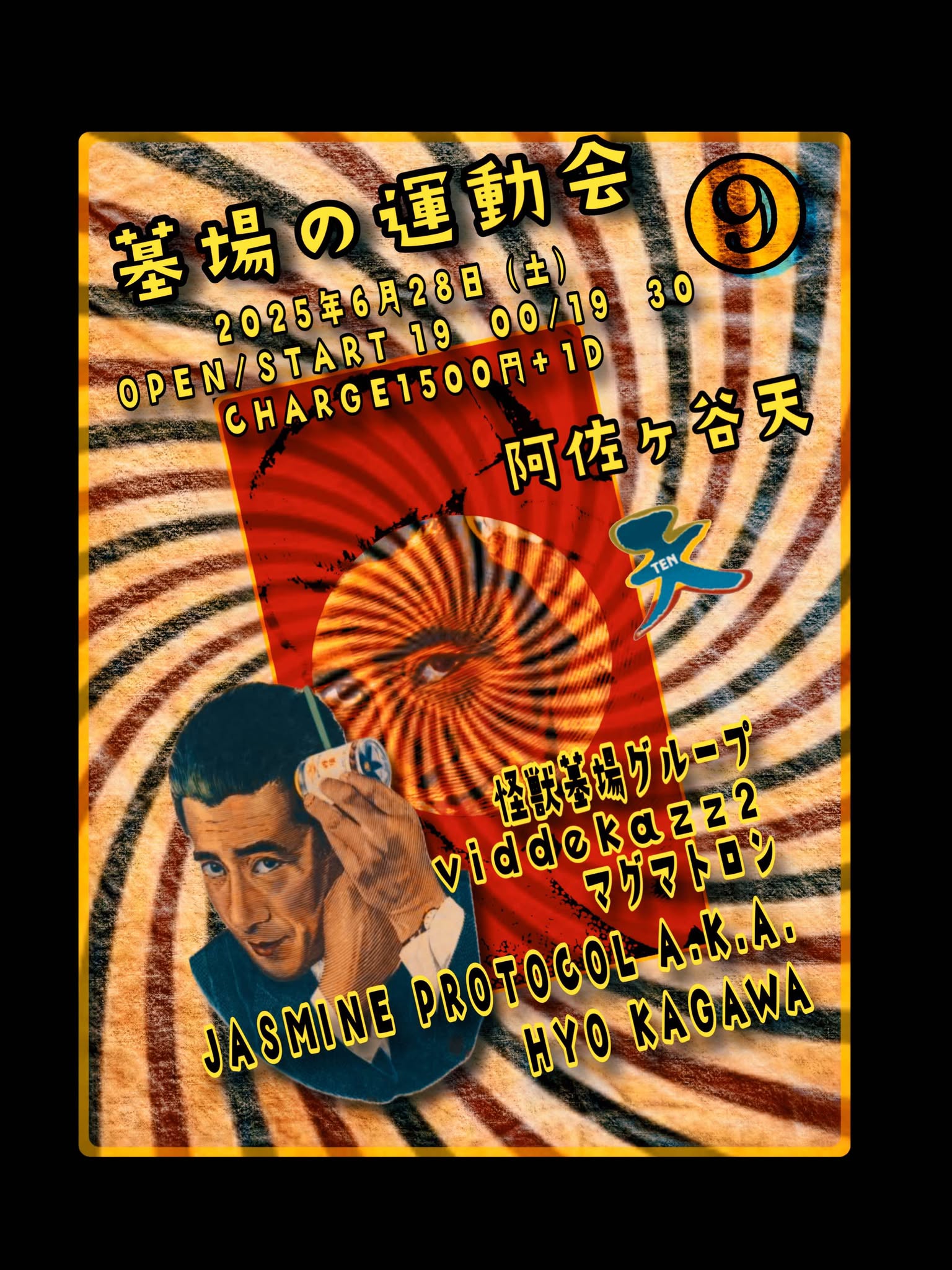 ▼怪獣墓場group みっく(b) 佐伯武昇(per) 島田透(ds) ▼マグマトロン 中川喜博(g,fl,as) 麻生智之(b,b-cl) 大谷昌功(ds,per,reeds) ▶Jasmine Protocol [a.k.a. Hyo Kagawa] ▼viddekazz2 MIYANO(g,vo) KICK-C(ds) |