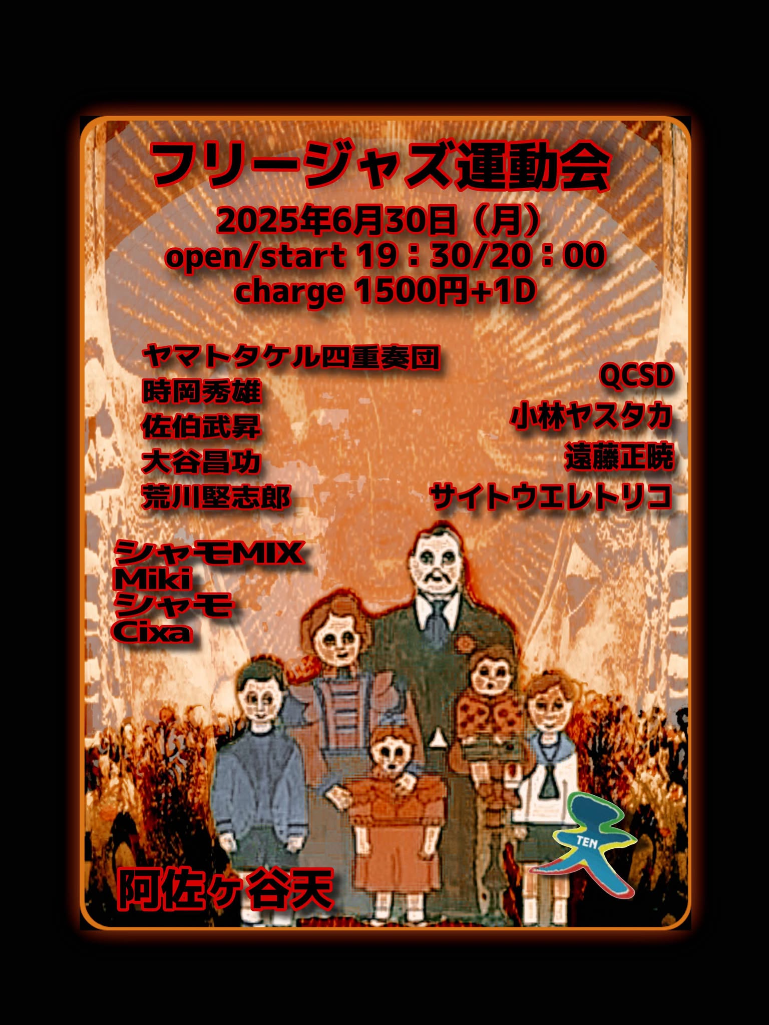 drums or percussion: Otzir Godot, 川サキ, Kuniyoshi Yamada reeds: 森順治, 多田葉子, 斉藤圭祐 move and more: CiXA |