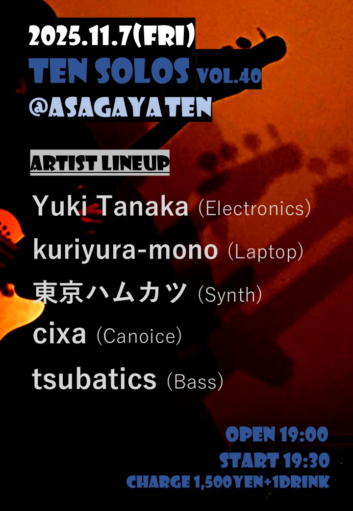 ▶CiXA(canoice) ▶tsubatics(bass) ▶Yuki Tanaka(electronics) ▶kuriyura-mono(b) ▶東京ハムカツ(synth) |