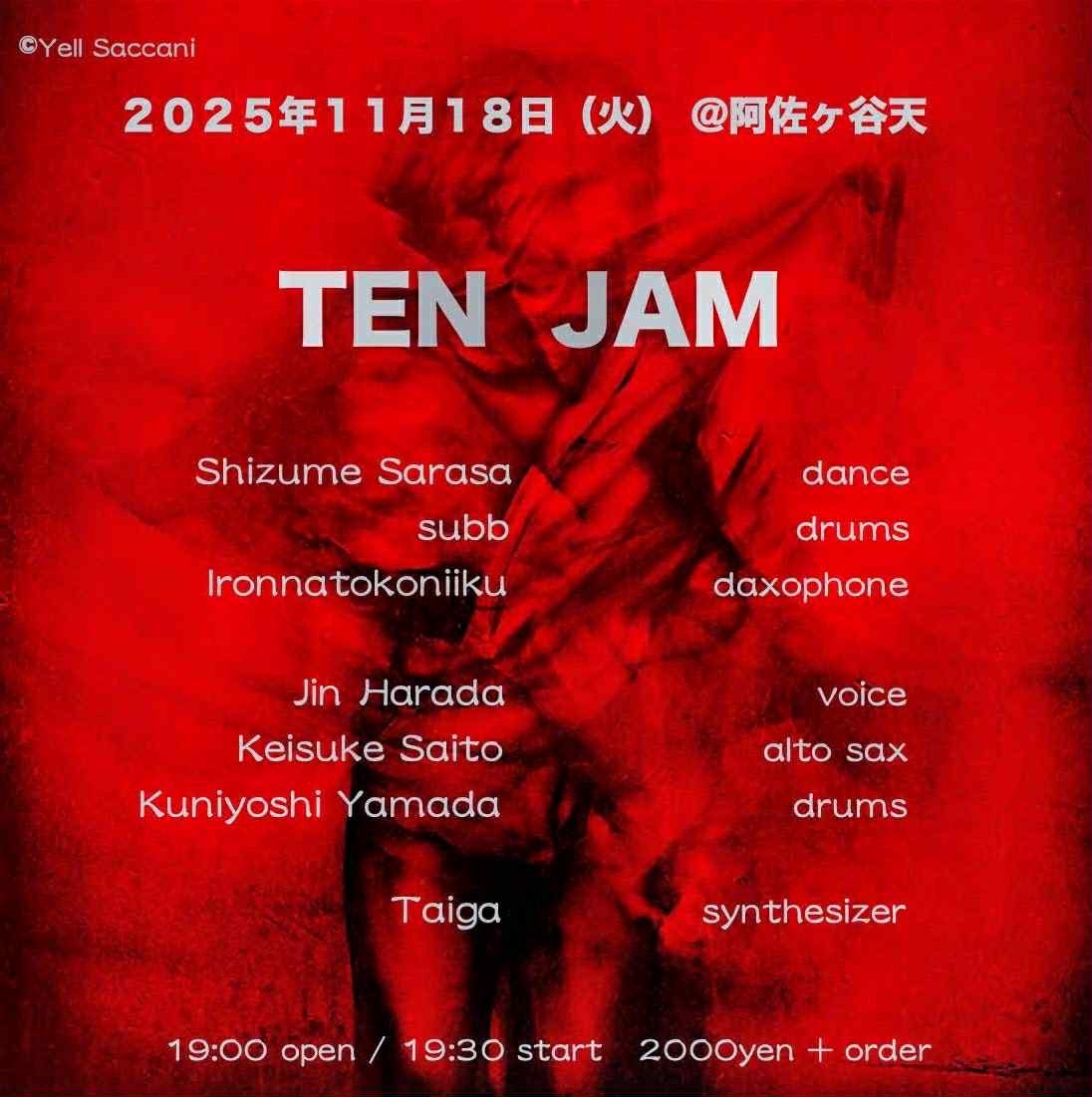 原田仁(voice) + 斉藤圭祐(alto sax) + 山田邦喜(drums) ▶Taiga(synthesizer) ▼ 鎮目更紗(dance) + subb(drums) + いろんなとこにいく(daxophone) |