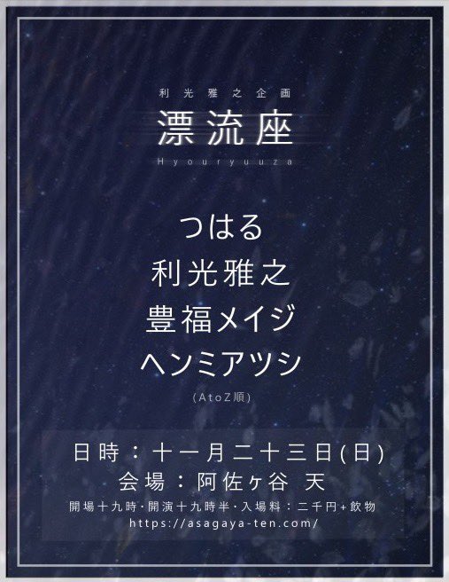 ▶我々 ▶照井創 ▶TASKE ▶山本直樹 DJ:ブリットポップ恭平 |