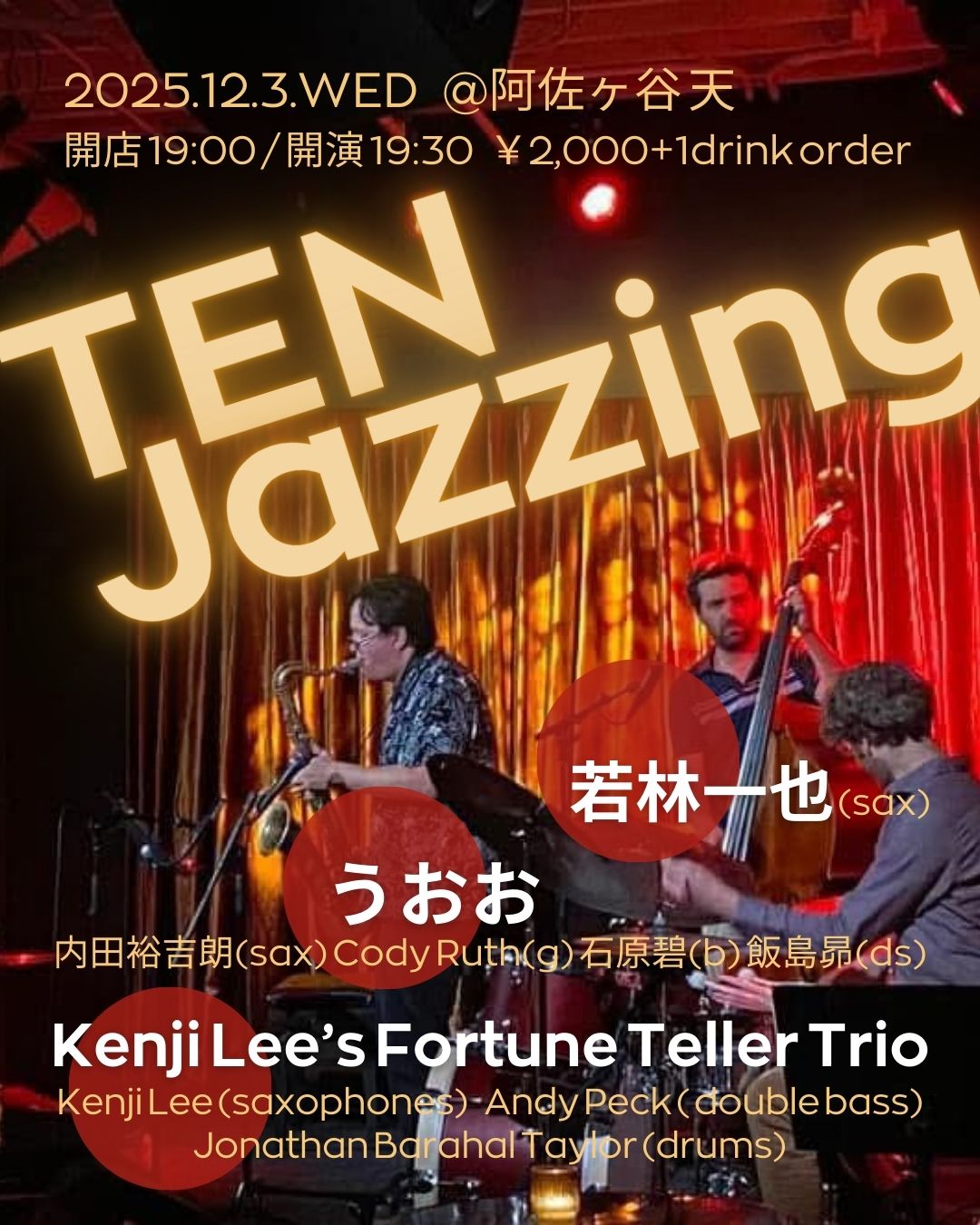 ▼Kenji Lee’s Fortune Teller Trio Kenji Lee - saxophones Andy Peck - double bass Jonathan Barahal Taylor - drums ▶若林一也(sax) ▼うおお 内田裕吉朗(sax) Cody Ruth(g) 石原碧(b) 飯島昴(ds) |