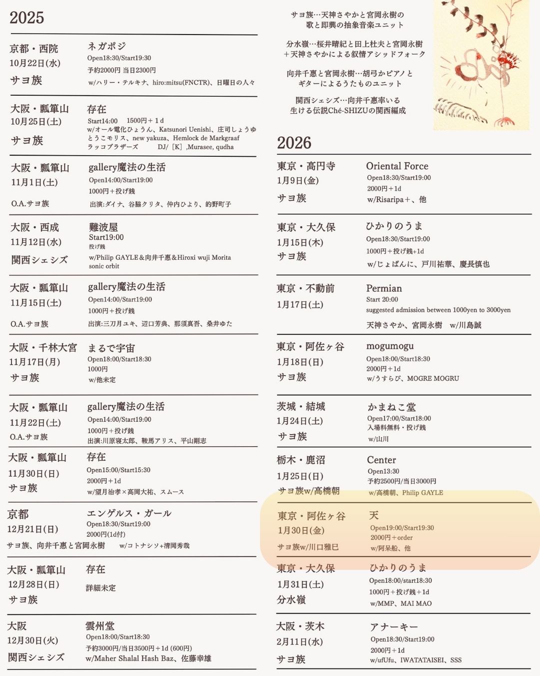 ▶桃源郷 ▶YOUNG MIND SOUL and more… ☆LIVE後は¥300で焼肉パーティー! よろしくお願いします。( ͡° ͜ʖ ͡°)b |